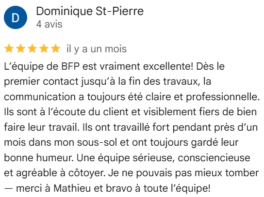 C’est justement notre quotidien : eau au sous-sol, fissures visibles, odeur d’humidité, béton effrité ou drain français absent ou non fonctionnel. Nous avons l’équipe et l’équipement pour l’excavation, l’imperméabilisation et les travaux de fondation. Nous adaptons la solution au terrain, pas l’inverse.