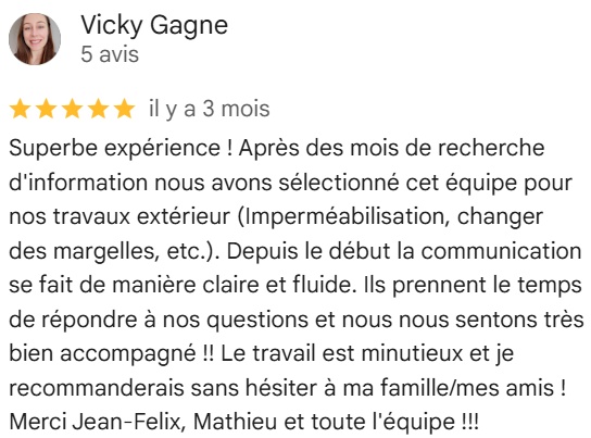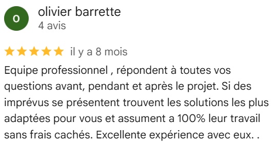 Oui. Nous offrons une garantie jusqu’à 15 ans, transférable si vous vendez la maison. Tout est expliqué clairement avant de commencer, et nous restons disponibles après les travaux. C’est aussi ce qui explique notre note moyenne de 5,0★.